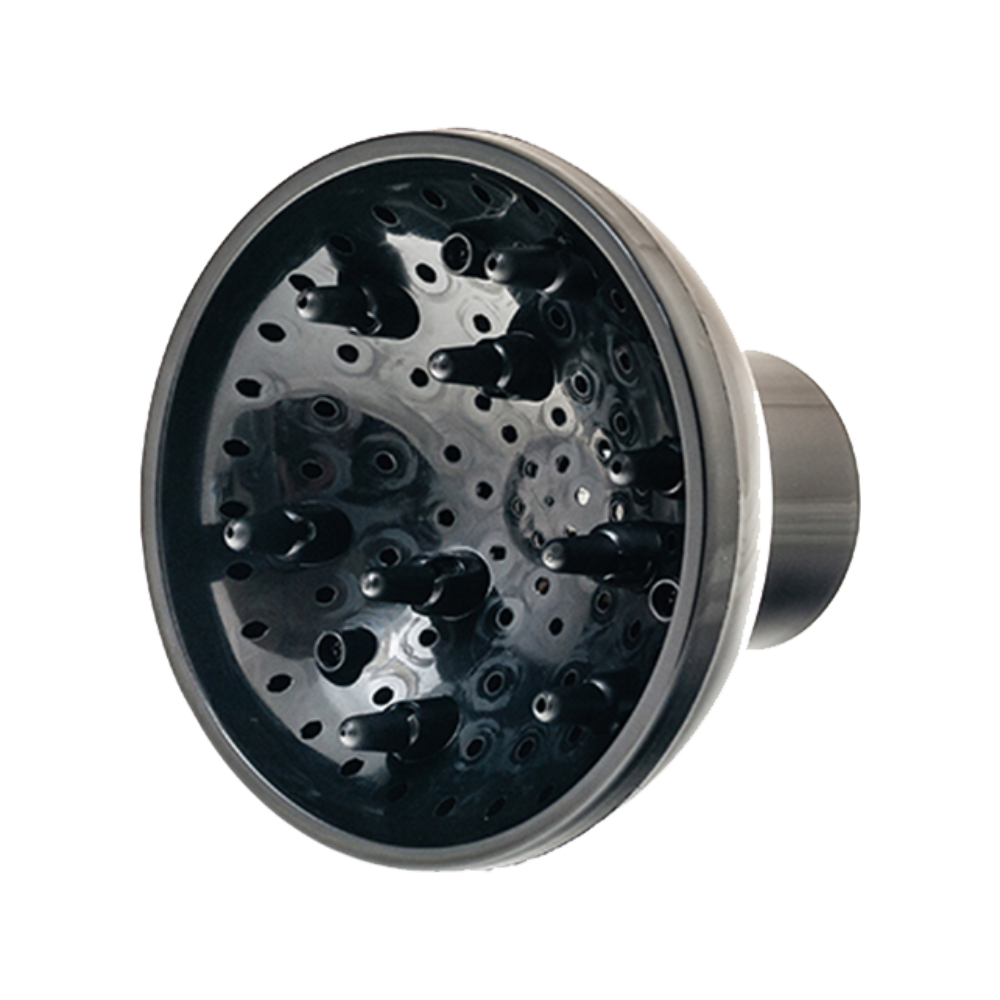 Глубокая наружная насадка-диффузор подходит к профессиональным фенам с длинным "стволом" и стандартным диаметром выходного отверстия до 50 мм. Диффузор предназначен для выполнения различного рода укладок, от идеально ровных прядей до объемных кудрей. Изделие изготовлено из высококачественного термостойкого пластика черного цвета диаметром 130 мм и иммеет 9 пальцев.