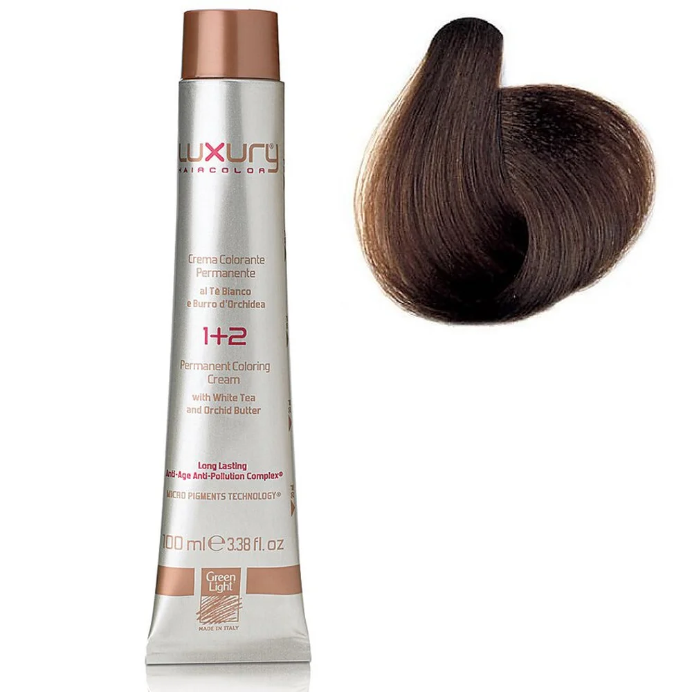 Откройте для себя серию роскошных, модных и сияющих цветов богатой палитры многочисленных оттенков с инновационной стойкой крем-краской Luxury Hair Color, которая обеспечивает непревзойдённый результат, 100% покрытие седины и безграничные возможности самовыражения. Самые передовые технологии, запатентованная система особо чистых микропигментов Intense and Deep Color Vibrations Micro Pigments Technology и очень низкое содержание аммиака (0,97%) гарантируют максимально точные результаты окрашивания, глубокое проникновение цвета в слои волоса и великолепное сияние насыщенных оттенков. Запатентованный комплекс Long-Lasting Anti-Age Anti-Pollution защищает окрашенные волосы от вредного воздействия смога, УФ-излучения и свободных радикалов. Обогащённая драгоценными растительными ингредиентами, такими, как экстракт белого чая (собранные вручную побеги богаты полифенолами и флавоноидами с антиоксидантными свойствами) и масло орхидеи (с питательными, увлажняющими и укрепляющими свойствами, благодаря входящим в состав липидам), эта крем-краска восстанавливает и защищает волосы, делая их блестящими, мягкими и шелковистыми, одновременно заботясь о коже головы.