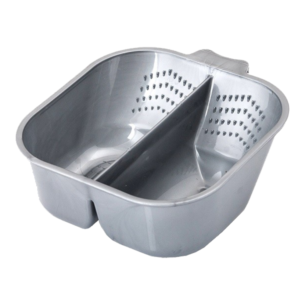 Парикмахерская миска с двумя секциями по 350 мл, оснащёнными делениями предназначена для наиболее комфортного процесса смешивания краски. Резиновые вставки на дне препятствуют ее скольжению. Удобная ручка-подставка обеспечивает дополнительную устойчивость. Миска оснащена специальными зубчиками для снятия лишней краски с кисти.