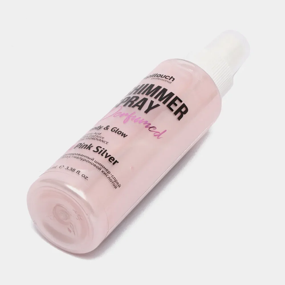 Ароматизированный серебристо-розовый блестящий спрей для тела с гиалуроновой кислотой. Продукт эффективно тонизирует и увлажняет кожный покров, выравнивает микрорельеф, придает коже сияние, обеспечивает лёгкий лифтинг и «шелковый» эффект. Средство обладает насыщенным парфюмерным ароматом с яркими нотами ягодного чая и уютной свежести, борется со стрессом и не окрашивает одежду.