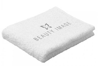 Белое махровое полотенце с логотипом Beauty Image для салонных процедур и SPA-ухода. Создает ощущение непревзойдённого комфорта.
