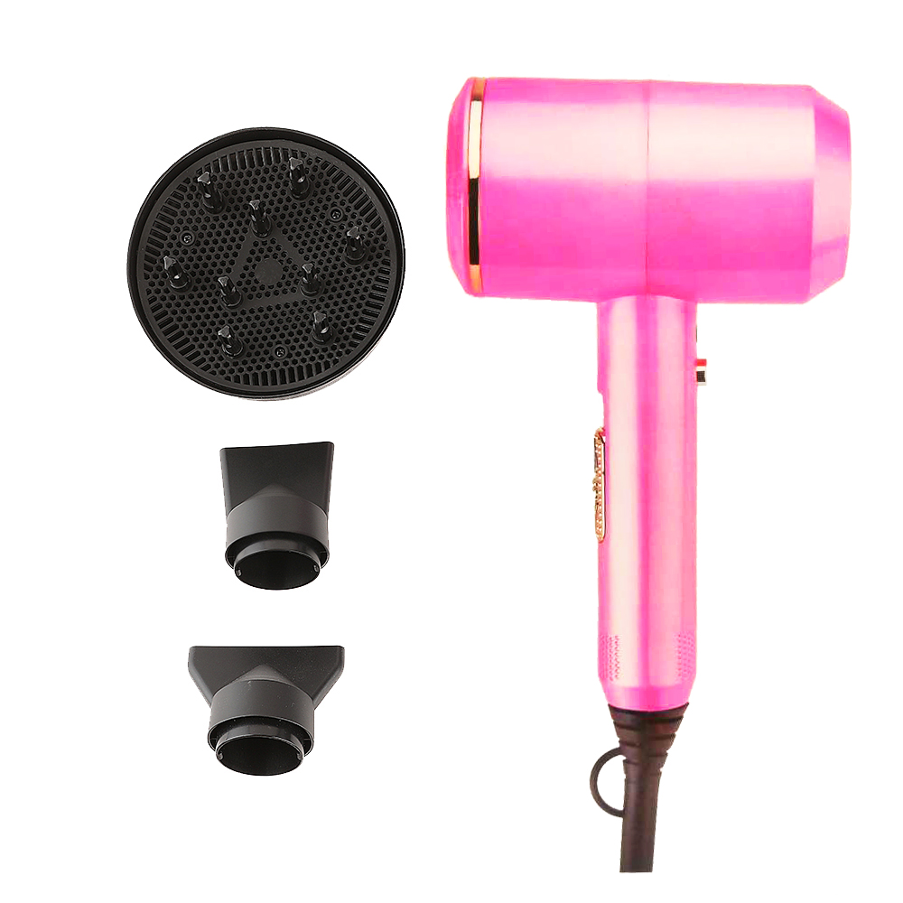 Профессиональный салонный ионный фен с 3 насадками, цвет розовый Resuxi