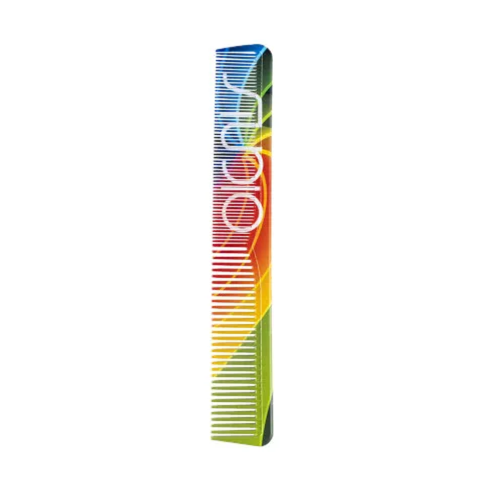 Расческа парикмахерская из поликарбоната для стрижки волос. Двойное расположение зубьев позволяет выполнять стрижки на волосах разной длины. Расческа устойчива к химическим препаратам.