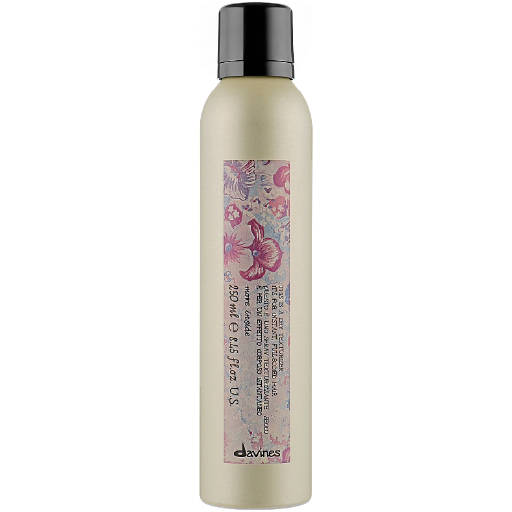 Сухой текстуризатор для моментального объема волос Davines Dry Texturizator More Inside поможет Вам создать яркий и неповторимый образ. Продукт предназначен для создания объемных укладок, придания эффекта растрепанных на ветру волос. Препарат надежно и надолго фиксирует созданный образ, не склеивая, не утяжеляя и не перегружая пряди. При помощи такого текстурирующего средства Вы мгновенно и без труда зафиксируете пряди в нужном направлении, сможете легко и быстро изменить укладку без необходимости мытья волос. Абсолютно незаметен на локонах и прекрасно поддерживает тонкие волосы без объема. Поможет создать прикорневой и дополнительный объем.