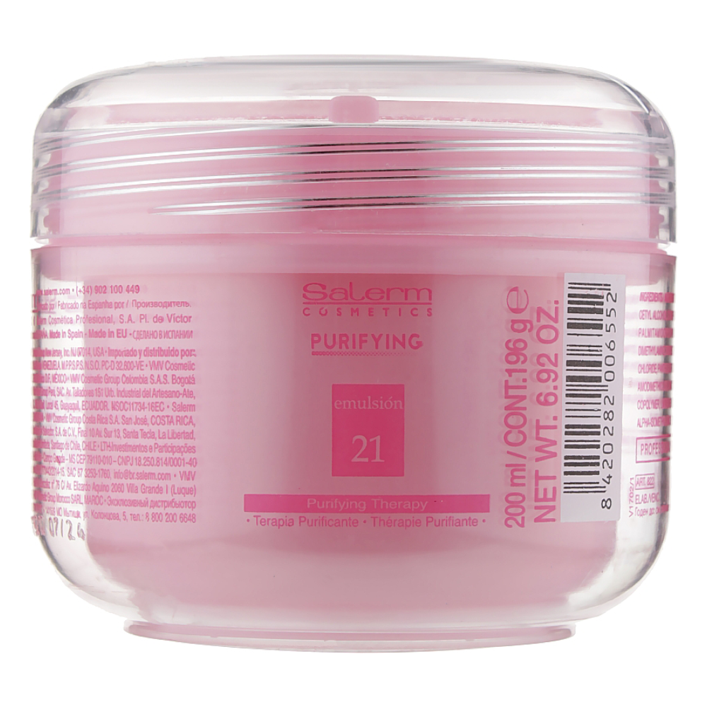 Увлажняющая эмульсия Salerm предназначена для ухода за волосами любого типа, особенно сухими и поврежденными. Продукт помогает восстановить утраченную красоту сухих, поврежденных и ослабленных волос. Провитамин В5, входящий в состав средства, проникает в глубокие слои стержня волосков, эффективно восстанавливая и питая их поврежденную структуру изнутри. Средство обладает пролонгированным эффектом, выдерживая 2-3 мытья головы, при этом не теряя своих защитных свойств. Активные компоненты способствуют питанию и увлажнению прядей от корней до самых кончиков, дисциплинируют непослушные локоны. Эмульсия возвращает безжизненному волосяному покрову шелковистость, мягкость и блеск, придает укладке дополнительный объем.