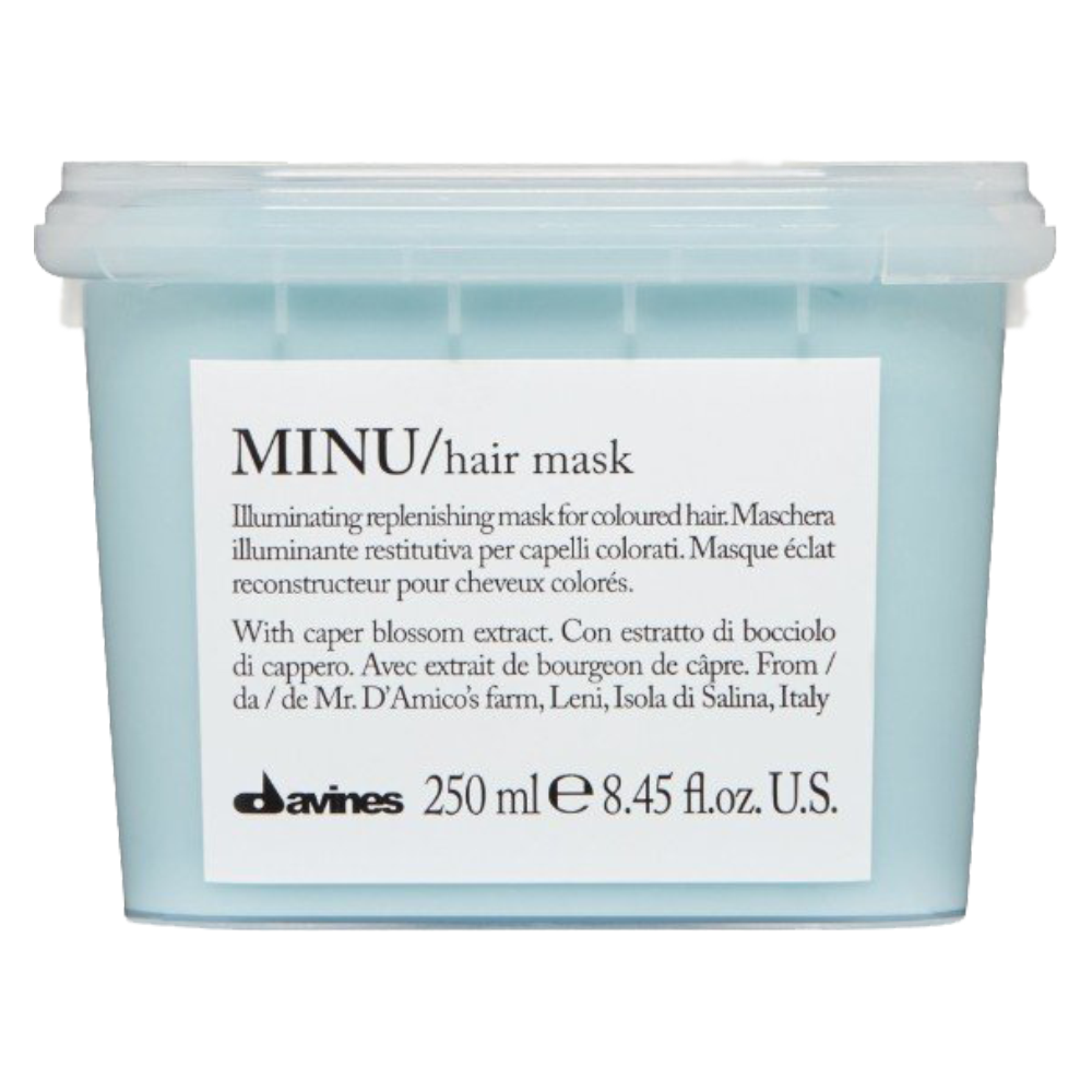 Маску Minu Hair mask рекомендуется применять для восстановления цвета окрашенных волос. Благодаря особой формуле, включающей в себя экстракт  цветков каперсов и аминокислоту кверцетин, средство проникает глубоко в структуру волос и эффективно восстанавливает и защищает их цвет. В результате его применения  Ваши волосы станут мягкими и послушными, а их насыщенный и сияющий цвет будет надежно защищен от вымывания. Для достижения отличных результатов в уходе за окрашенными волосами рекомендуется применять маску совместно с шампунем и сывороткой Minu.