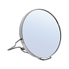 Зеркало косметическое двустороннее в металлической оправе с подставкой. С одной стороны зеркало обычное, с другой - с двойным увеличением. Диаметр изделия 11см.